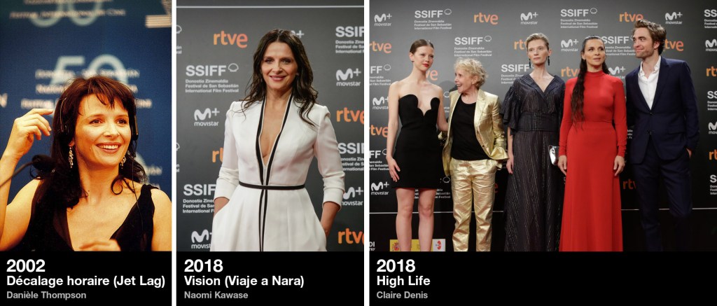 Juliette Binoche ha compaginado papeles en grandes superproducciones de acción como Godzilla (Gareth Edwards, 2014) o Ghost in the Shell (Ghost in the Shell: el alma de la máquina, Rupert Sanders, 2017) con trabajos para autores de la talla de David Cronenberg (Cosmópolis, 2012), Isabel Coixet (Nadie quiere la noche, 2015) o Bruno Dumont, con quien ha actuado en Ma Loute (La alta sociedad, 2016) y Camille Claudel 1915 (2013), en la que encarnó a la reconocida escultora Camille Claudel. También son frecuentes sus incursiones con el cineasta Olivier Assayas, que la ha dirigido en L’heure d’été (Las horas del verano, Perlak, 2008), Clouds of Sils Maria (Viaje a Sils Maria, 2014) y Doubles vies (Dobles vidas, 2018). En 2018 la actriz regresó a San Sebastián para presentar dos películas que compitieron en la Sección Oficial: Vision (Viaje a Nara / Vision), un relato místico de Naomi Kawase, y High Life, una nueva colaboración con Claire Denis enmarcada en el género de la ciencia ficción que obtuvo el Premio Fipresci. Junto a esta directora, con quien ya había rodado Un beau soleil intérieur (Un sol interior, 2017), ha trabajado recientemente en una película que compitió en la última Berlinale, Avec amour et acharnement (Fuego, 2022), la historia de un triángulo amoroso que Binoche forma junto a Vincent Lindon y Grégoire Colin. Será la Proyección Premio Donostia que acogerá el Auditorio Kursaal tras la gala en la que la actriz recibirá el galardón.